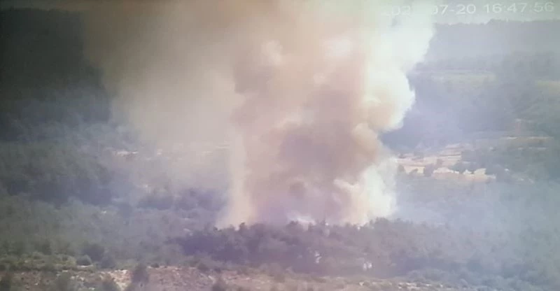İzmir’in Buca ilçesinde ormanlık alanda çıkan yangına ekipler havadan ve karadan müdahale ediyor.