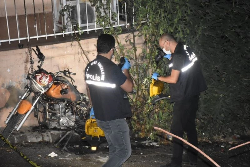 Olay yerine gelen polis ekipleri yanan motosikletin olduğu bölgeyi emniyet şeridi ile kapattı. Motosikletin yandığı bölgeyi ve yakınlarını inceleyen ekipler, olayın kim ya da kimler tarafından gerçekleştiğini tespit etmek için çalışma başlattı.