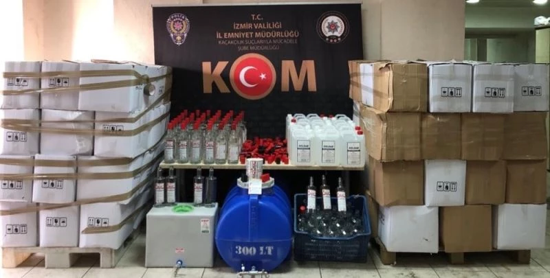 İzmir İl Emniyet Müdürlüğü Kaçakçılık Suçlarıyla Mücadele Şube Müdürlüğü ekipleri, Işıkkent Mahallesi’ndeki sanayi sitesinde bulunan bir depoda sahte etil alkol üretildiği bilgisi üzerine harekete geçti. Depoya operasyon gerçekleştiren ekipler, piyasaya sürülmeye hazır halde bin 8 litre sahte etil alkolün yanı sıra 5 litrelik bidonlarda 640 litre sahte etil alkol, tank içerisinde 150 litre sahte etil alkol, 810 adet boş şişe, 350 adet plastik bilyeli kapak, 200 adet metal bilyeli kapak, 380 adet taklit etiket ve çeşmeli tanka el koydu.