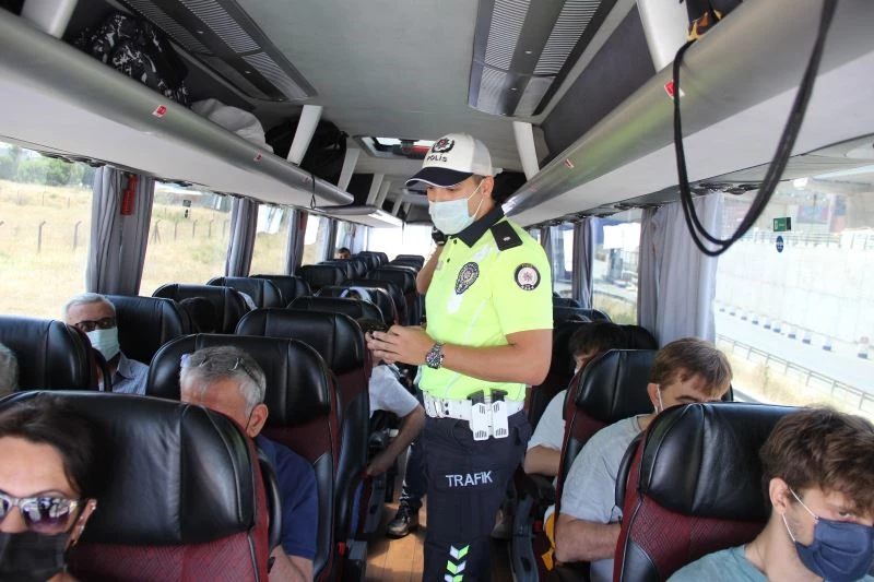 Sürücülerin de belgelerini inceleyen ekipler, sürücülerden yolculuk esnasında mola ve dinlenme saatlerine uyup, zamanında şoför değişimi yapmalarını ve emniyet kemerlerini çıkarmamaları gerektiğini söyledi.