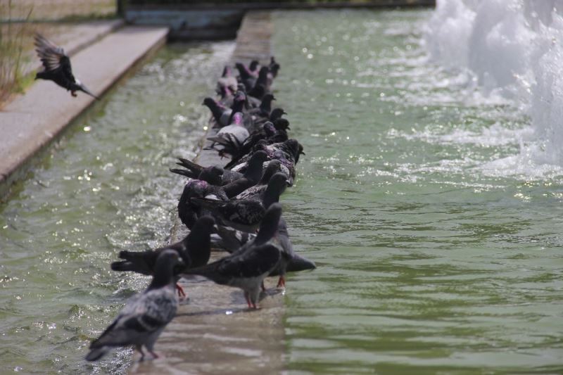 Meteorolojiden alınan verilere göre İzmir’de hava sıcaklığı rekor seviyede. Mayıs ayının ortasında ağustos ayını aratmayan sıcaklık, önümüzdeki haftanın ilk günlerinde de bölgeyi etkilemeyi sürdürecek. Sıcak havanın etkisiyle Konak Meydanı’nda bulunan güvercinler, havuza girip su içerek serinlemeye çalıştı.