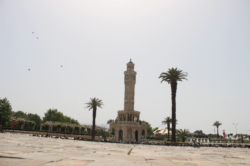 Korona virüs tedbirleri kapsamında sokağa çıkma kısıtlamasının uygulandığı İzmir’de Konak Meydanı yine güvercinlere kaldı. Sıcak havanın etkisiyle meydanda bulunan havuzda serinleyen güvercinler, yine havuzdan su içerek susuzluklarını giderdi.