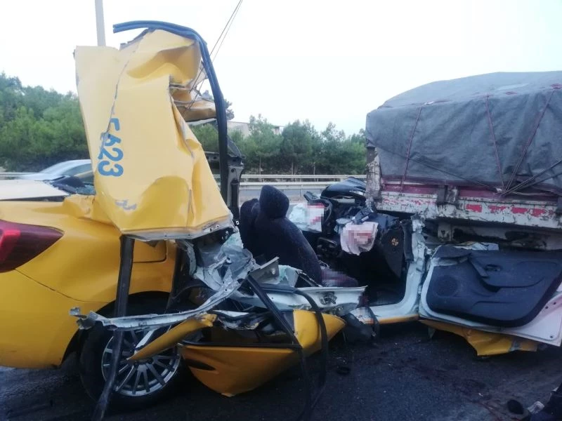 İzmir’de ticari taksi tıra ok gibi saplandı: 1 ölü, 2 ağır yaralı