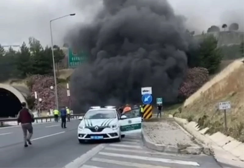 Yangın sebebiyle otoyol bir süreliğine trafiğe kapatılırken, yangını kontrol altına alma ve dumanları tahliye çalışmaları sürüyor.