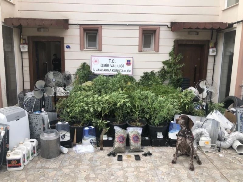 Edinilen bilgiye göre, Menemen Cumhuriyet Başsavcılığı uyuşturucu satıcılarına yönelik operasyonun talimatını verdi. Harekete geçen İzmir İl Jandarma Komutanlığına bağlı ekipler, narkotik köpeklerinde katılımıyla Menemen Villakent bölgesinde iki farklı adrese baskınlar yaptı. Ekipler operasyonda, seralarda uyuşturucu madde üretimi yapıldığını tespit etti. Aramalarda, iklimlendirme düzeneği kurulan depo içerisinde yaklaşık 1.50 santimetre boyunda 48 kök Hint keneviri, 1.5 kilogram kubar esrar maddesi ve çok sayıda üretim esnasında kullanılan malzemeler ele geçirildi.