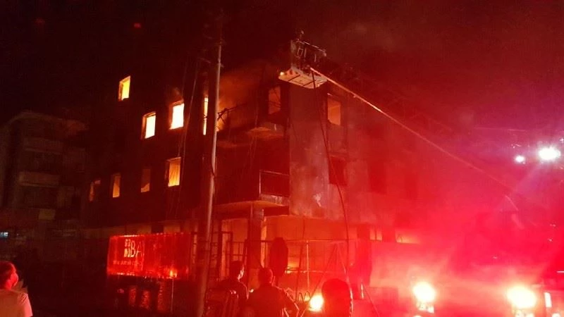 Yangın, akşam saatlerinde ilçeye bağlı Menderes Bulvarı üzerindeki 4 katlı binada meydana geldi. Binanın altında bulunan ve çiçek malzemeleri sattığı öğrenilen dükkanda ki saksıların alev alması sonucu çıktığı ileri sürülen yangında alevler kısa sürede tüm binayı sardı. Durumu gören vatandaşlar tarafından itfaiye, polis ve sağlık ekiplerine bilgi verildi. Alevler kısa sürede büyüyerek binayı tamamen etkisi altına alırken, yakın çevredeki ilçelerden de itfaiye aracı takviyesi istenildi.