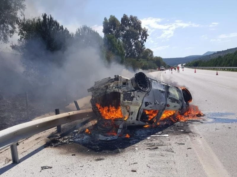 İzmir-Çeşme otoyolunda bugün saat 10.30 sıralarında meydana gelen kazada, 35 AH 256 plakalı otomobil Alaçatı gişeleri yakınında takla atarak yanmaya başladı. Kazanın ardından aracın arka koltuğunda bulunan Özden Karamuk (37) ve oğlu Kayra Karamuk (9) araçtan çıkmayı başarırken, sürücü ve yanındaki kişi ise yanarak hayatını kaybetti. Yaralı anne ve oğlu hastaneye kaldırılırken, hayatını kaybeden 2 kişinin cenazesi İzmir Adli Tıp Kurumuna kaldırıldı. Adli Tıp Kurumunda yapılan incelemeler sonucu ve kaza geçirenlerin yakınlarının ifadesi ile ölenlerin İbrahim Örsçelik (40) ve kızı İlayda Ö. olduğu ortaya çıktı.