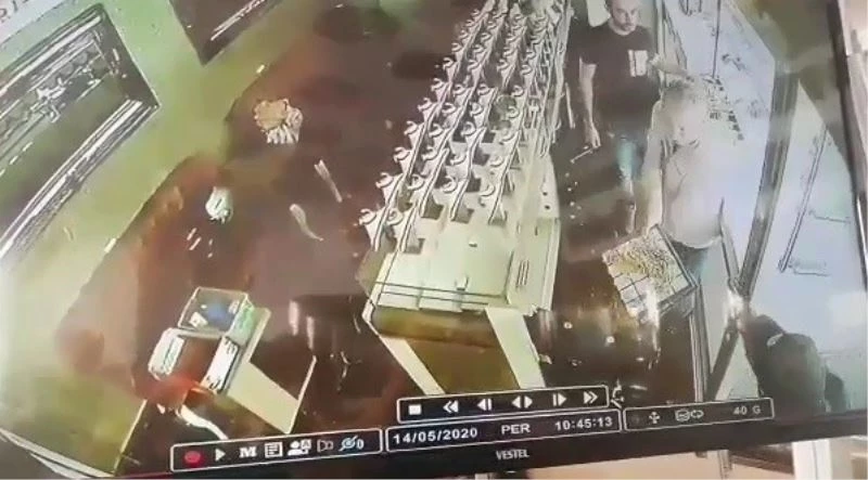 Kamera görüntülerinde, iki çalışanın takıları vitrine yerleştirdiği sırada dükkana eli silahlı, maskeli ve şapka takan birinin girdiği, bir miktar altını alıp kaçtığı görülüyor. Polis ekiplerinin soygunu gerçekleştiren şüpheliyi yakalama çalışmaları sürüyor.