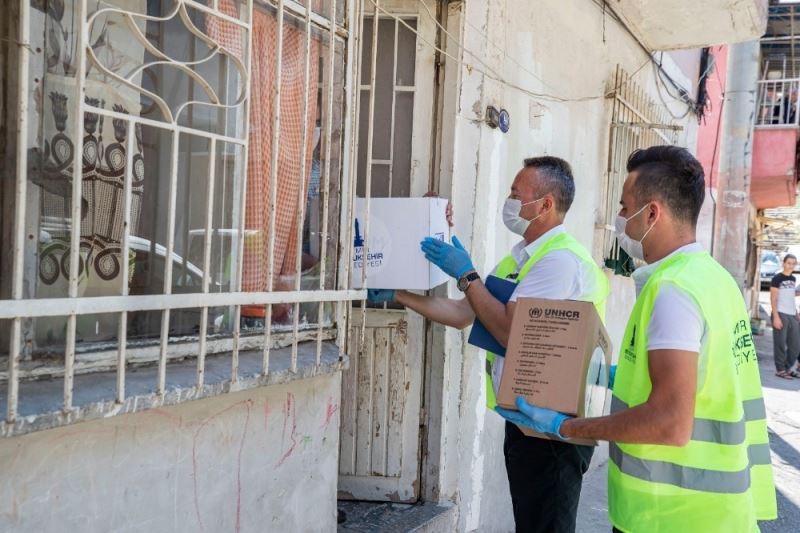 İzmir Büyükşehir Belediyesi, Birleşmiş Milletler Mülteciler Yüksek Komiserliği ve Uluslararası Göç Örgütü işbirliğinde mültecilere gıda ve hijyen paketleri dağıtmaya başladı.