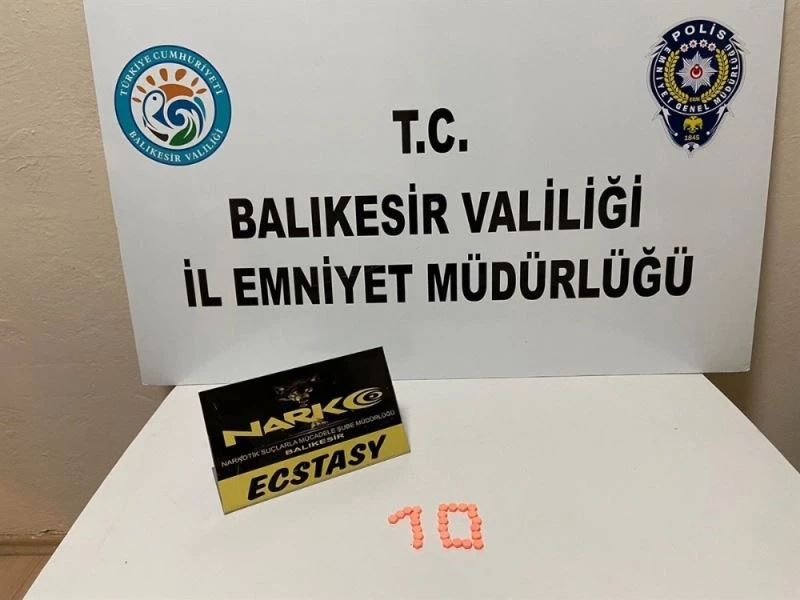 Edinilen bilgiye göre, Balıkesir İl Emniyet Müdürlüğü Narkotik Suçlarla Mücadele Şube Müdürlüğü’nce il genelinde uyuşturucu madde ticareti yapan, kullanan ve bulunduran şahısların yakalanmasına yönelik yapılan çalışmalarda; Balıkesir merkezinde ikamet eden M.Ö. isimli şahsın İzmir İlinden Balıkesir’e uyuşturucu madde getireceği yönünde istihbari bilgiler elde edilmiş, şahısla ilgili yapılan araştırmalarda, şahsın şehirler arası yolcu otobüsü il merkezine geldiği tespit edilerek, İzmir Yolu Polis uygulama noktasında saat 23 sıralarında uygulama noktasına intikal eden otobüs içerisinde M.Ö. isimli şahsın olduğu tarafımızca tespit edildi ve şahsın yapılan kontrollerinde 25 adet Ecstasy hap ele geçirildi. Yakalanan şahıs ile ilgili tahkikata başlanıldığı öğrenildi.