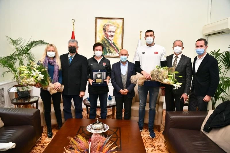 İzmir’e gurur yaşatan milli yüzücü Sakçı Başkan Soyer’i ziyaret etti