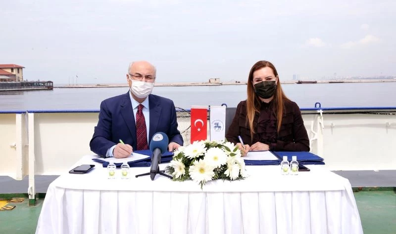 Protokol imza töreninin ardından Vali Yavuz Selim Köşger ve Rektör Prof. Dr. Nükhet Hotar, gemide incelemelerde bulunarak yetkililerden bilgi aldı.