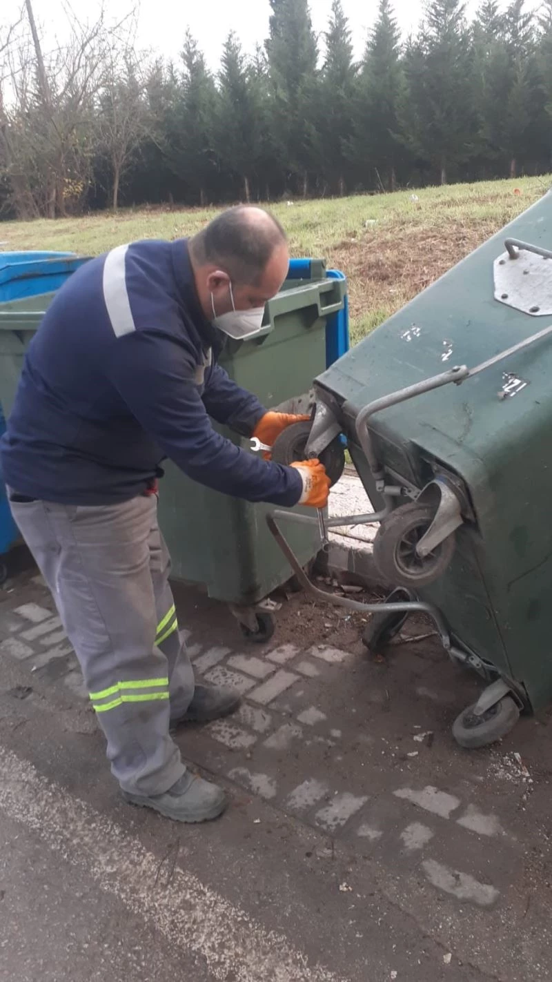 Temizlik İşleri Müdürlüğü ekipleri, kullanılamayacak durumda olan çöp konteynerlerini ise yenileriyle değiştirdi. Ekipler ayrıca çöp konteynerlerinin ulaşımı engellemesi adına cepler oluşturarak konteynerleri cebe yerleştirdi.