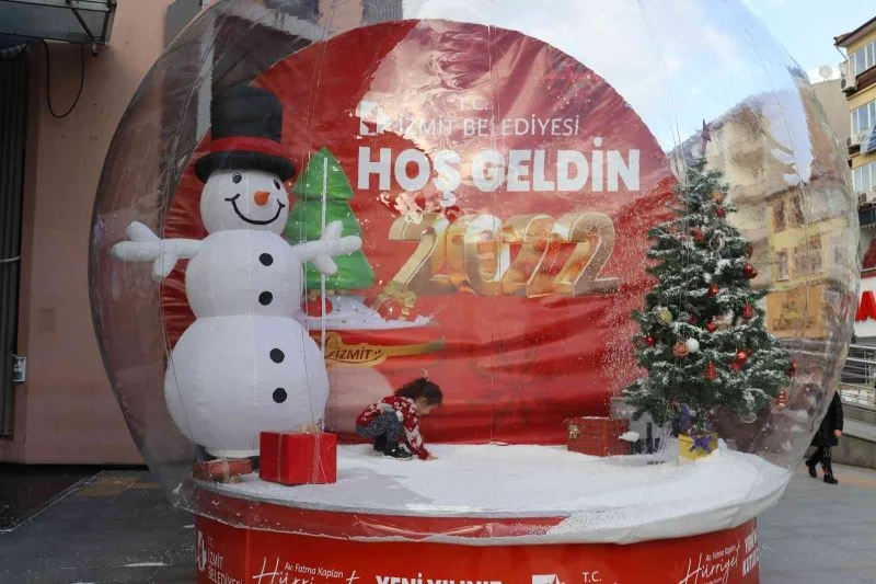 İzmit Belediyesi, geçmiş yıllarda olduğu gibi bu yılbaşı öncesinde de devasa kar küresini Belsa Plaza önüne getirerek vatandaşlar için renkli görüntüler oluşturdu.