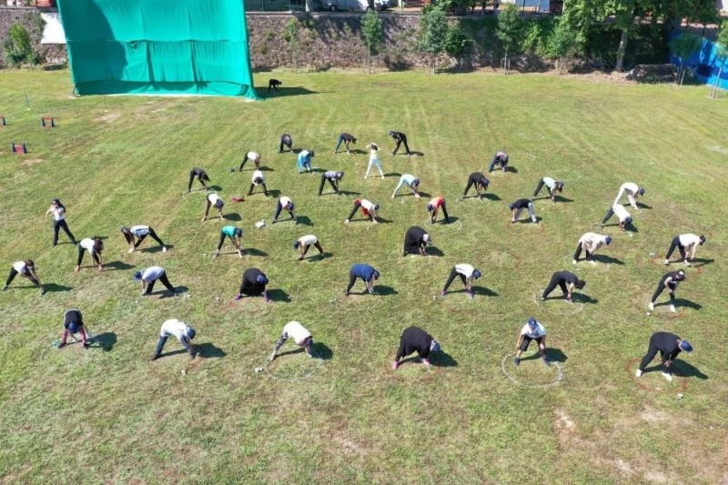 İzmitli kadınlar sosyal mesafe çemberleri içinde spor yaptı