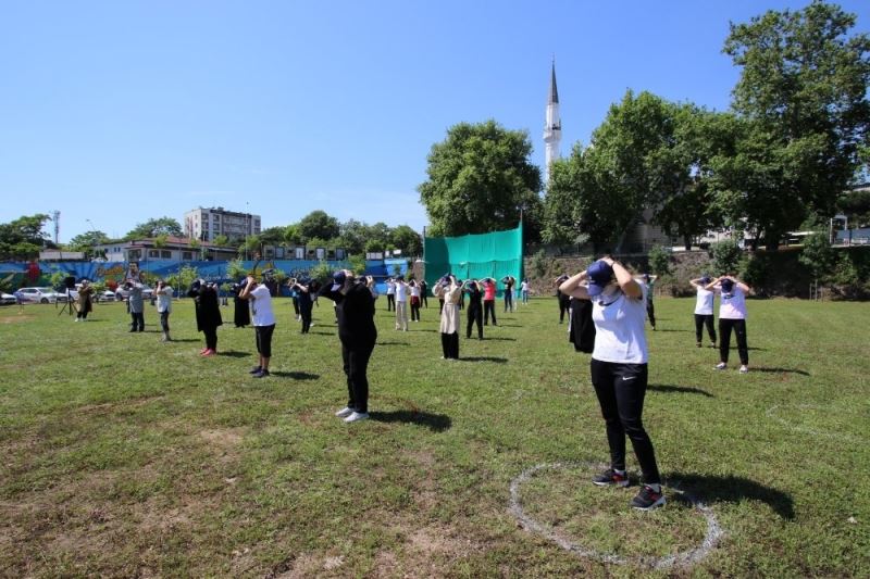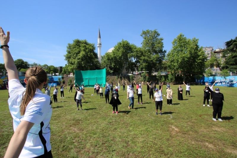Kocaeli’de uzun süredir evlerinde kapalı kalan kadınlar, düzenlenen etkinlikle açık havada sosyal mesafe kurallarına uyarak spor yaptı.