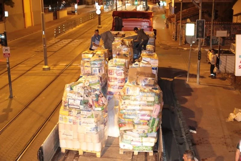 Antalya’nın Manavgat ilçesinde orman yangınları nedeniyle mağdur olan vatandaşların yanında olan İzmit Belediyesi, başlattığı yardım kampanyasında toplanan malzemeleri dün gece Manavgat’a gönderdi. Hayırseverlerin acil ihtiyaç listesine göre bağışladığı malzemeleri Gıda Bankası’nda toplayan, hijyenini sağlayan, tasnif eden ve paketleyen İzmit Belediyesi bugün de Muğla’ya yardım tırlarını gönderecek. İzmit Belediyesi destek kampanyasında yardımseverlerden topladığı; su, içecek, bebek bezi, bebek maması, bebek devam sütü, hijyenik ped, yanık kremi, ağrı kesici, konserve-paketli gıda, giysi, kolonya, ıslak mendil, peçete, tuvalet kağıdı, temizlik malzemeleri, kişisel bakım ürünleri, hayvan mamaları, ilkyardım malzemeleri, kürek, tırmık, baret, elektronik aletler, pil, el feneri gibi belirlenen acil ihtiyaçlardan oluşan ayni yardımları bölgeye sevk etti.