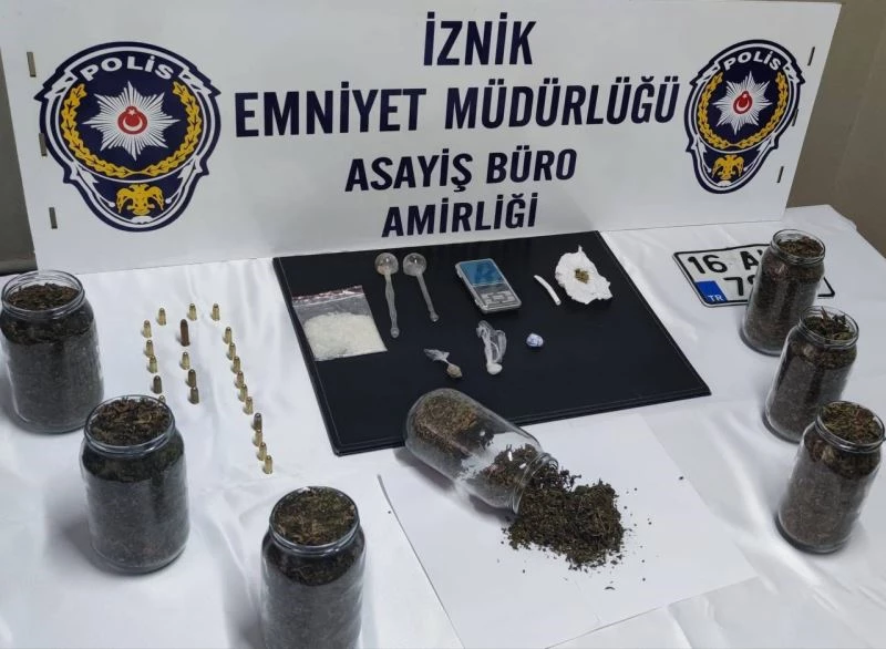 İznik Cumhuriyet Başsavcılığının talimatlarıyla, Bursa Narkotik Suçlarla Mücadele Müdürlüğü ekipleri tarafından yürütülen çalışma sonrasında takibe alınan bir araç İznik’te Elbeyli Hespekli mevkiinde durduruldu. Araçta arama yapan polis ekipleri 30 gram metamfetamin, 11 bin 300 lira nakit para, 2 adet payp apart, 2 gram selvi, 7 adet cam kavanoz içerisinde 2 kilo 600 gram esrar, 25 adet dolu fişek, 1 hassas terazi ve bir motosiklete ait çalıntı plaka ele geçirildi. Polis ekiplerince araçta suçüstü yakalanan M.T., A.T. ve İ.Ş. emniyetteki işlemlerinin ardından sevk edildiği adliyede çıkarıldığı mahkemece tutuklandı.