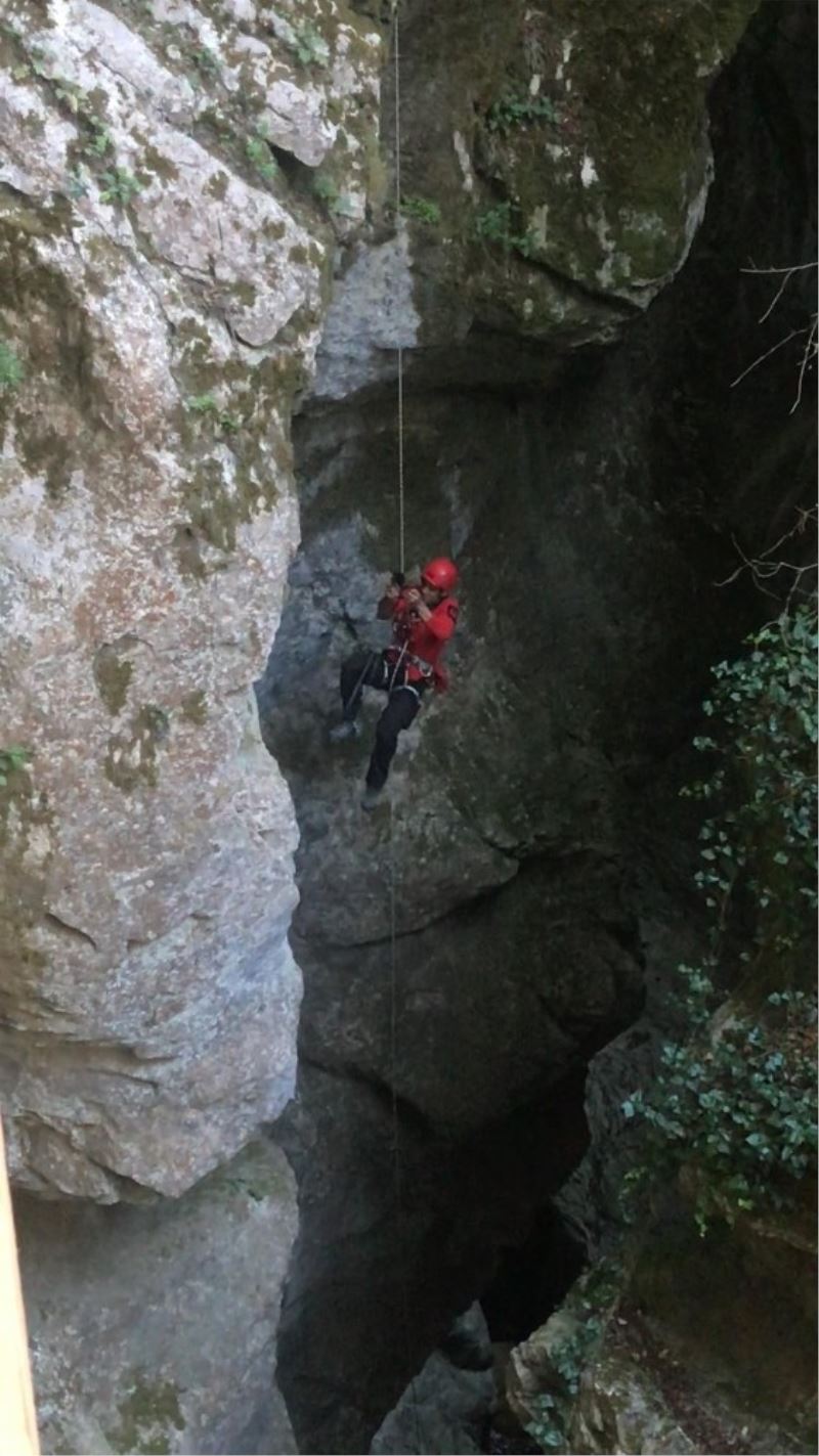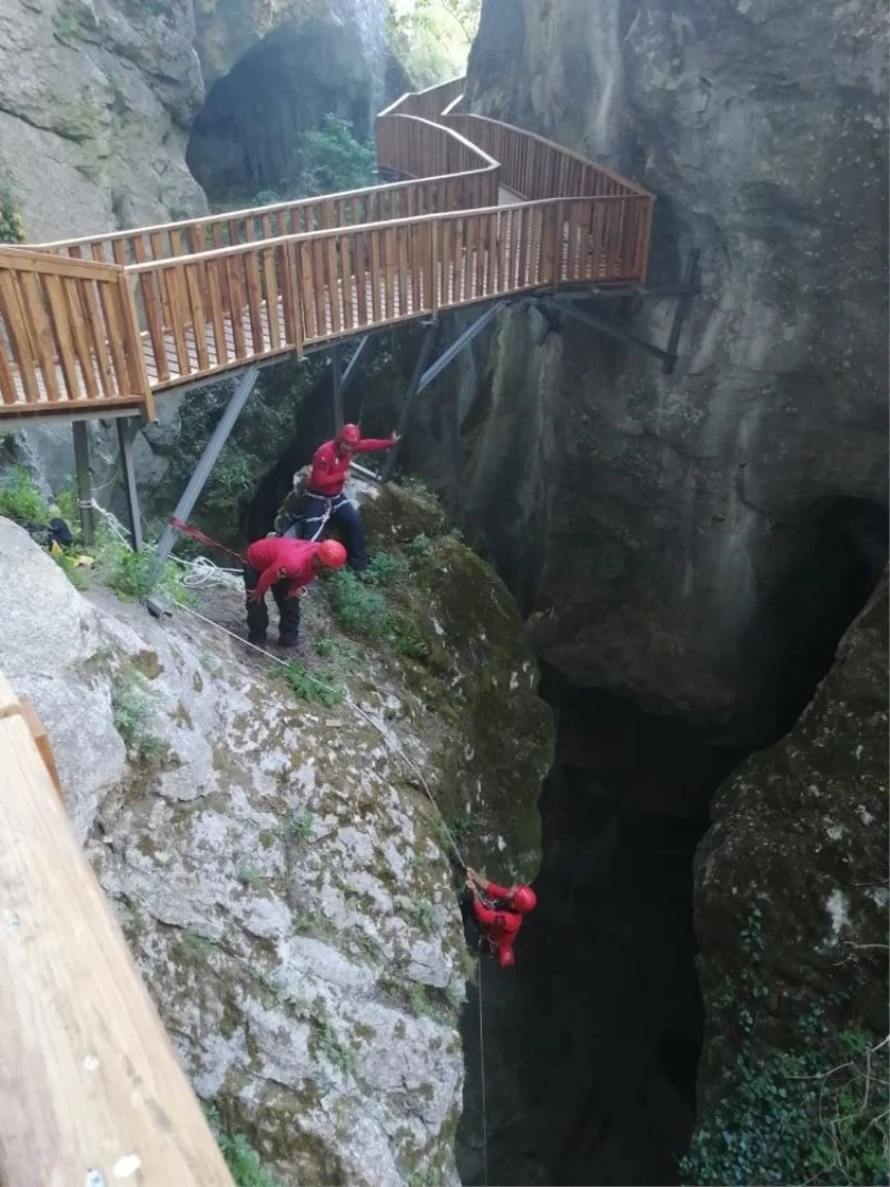JAK Timi, Horma Kanyonu’na düşen cüzdanı 25 metre iple salınarak aldı