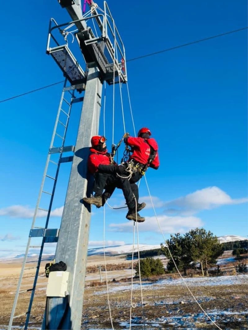 Özel arama kurtarma (JAK) timleri hazırlık eğitimleri kapsamındaki senaryoya göre telesiyejde mahsur kalan vatandaşı başarılı bir şekilde kurtardı.