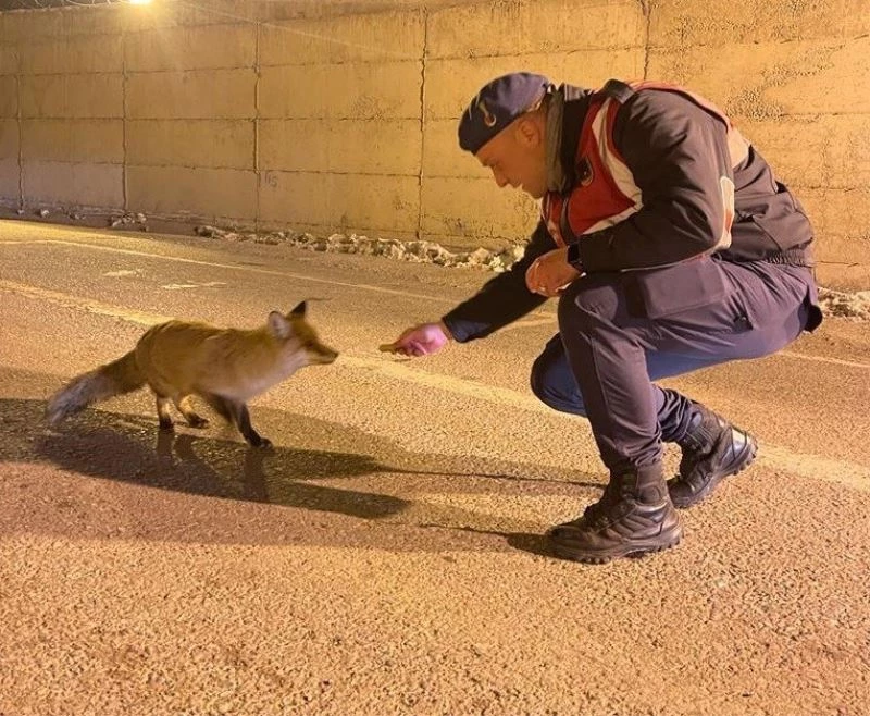 Başkale ilçesinde 2 bin 400 rakımda eksi 22 derece soğuğa rağmen görev yapan jandarma personelleri, hayvanları da unutmuyor. Geçtiğimiz günlerde Van-Hakkâri karayolundaki Bebleşin mevkiindeki trafik kontrol noktasında görevli jandarma personeli, yolda bir tilkinin kendilerine doğru geldiğini fark etti. Tilkinin aç kaldığını düşünen jandarma, hayvanın yanına kadar gitti. Jandarma personelleri kar nedeniyle yiyecek bulamayan ve uzun süre aç kalan tilkiyi elleriyle besledi. Yaşananlar ise cep telefonu kamerasıyla kayıt altına alındı.