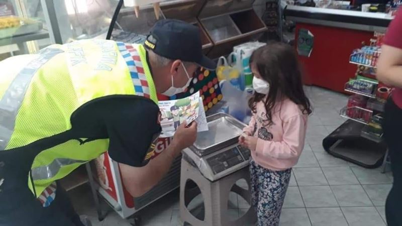 Denizli’de jandarma ekipleri, çocukların salgın sebebiyle evde kaldıkları sürede trafik kurallarını öğrenmelerini amaçlayarak boyama kitabı hediye etti.