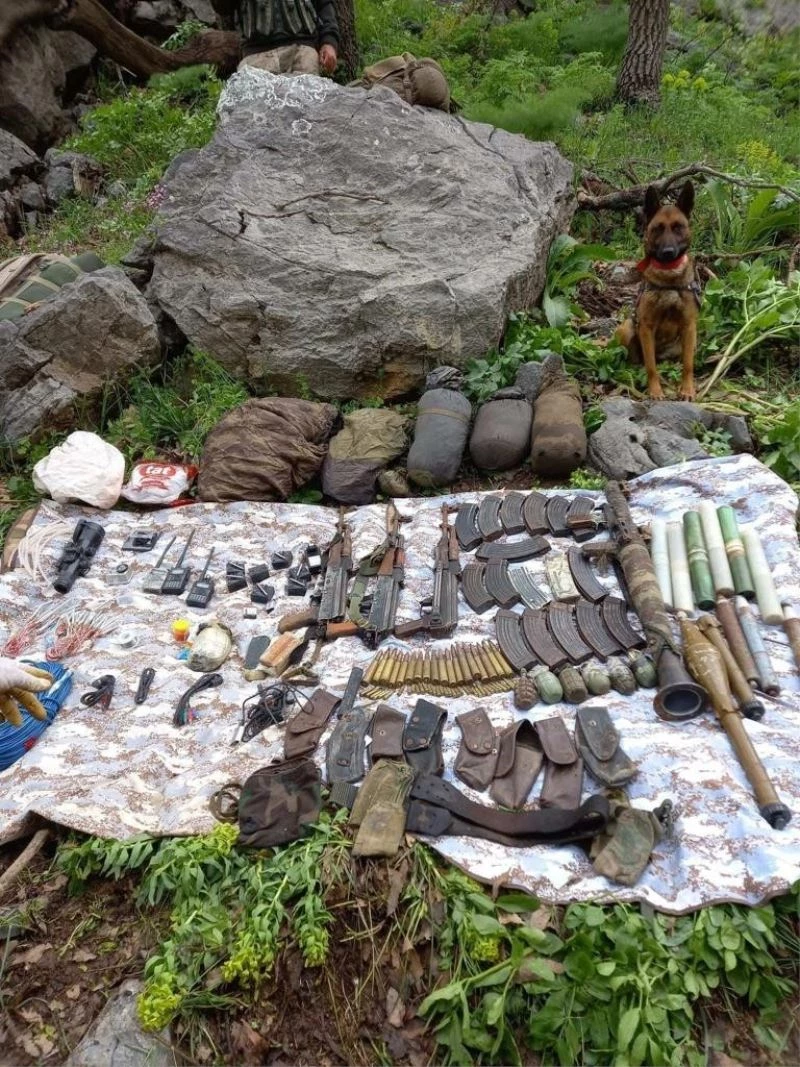 Siirt İl Jandarma Komutanlığı ekipleri, kayalıklar arasında bir bidon içerisinde çok sayıda silah ve mühimmat ele geçirdi.