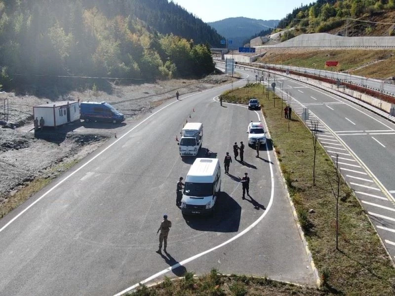 Kastamonu İl Jandarma Komutanlığı ekipleri, Kastamonu-Ankara karayolu üzerinde drone destekli trafik denetimi yaptı.