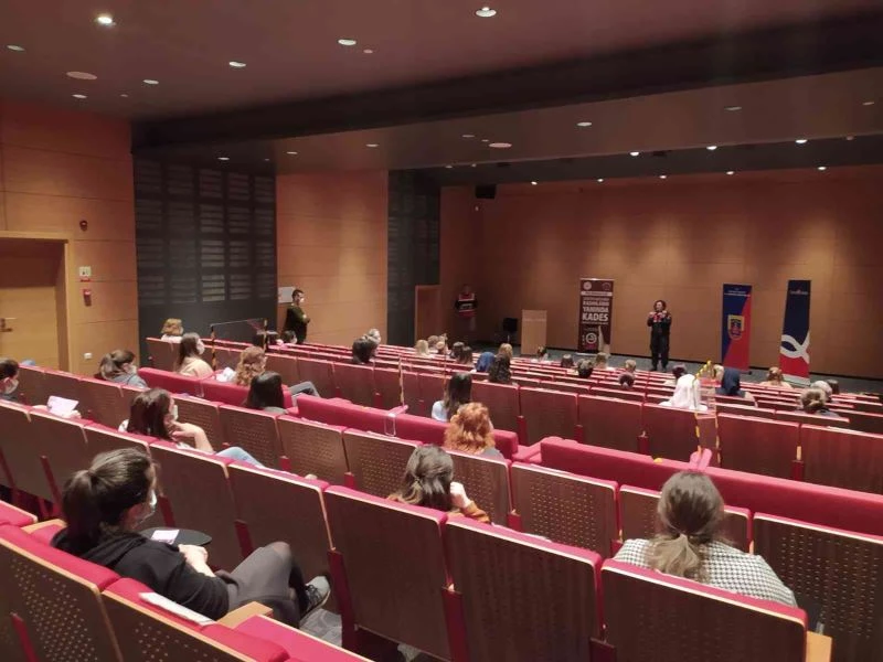 Kocaeli İl Jandarma Komutanlığı ekipleri, kadın çalışanlara KADES uygulamasını anlattı.