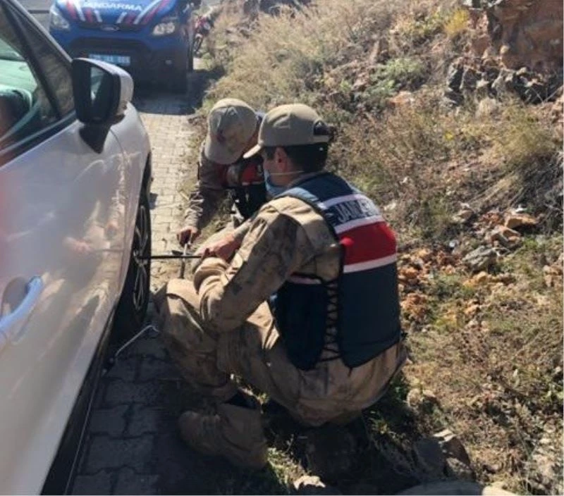 Ardahan’ın Çıldır ilçesinde patlayan lastiği değiştiremeyen vatandaşa jandarma ekipleri yardım etti.
