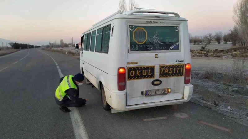 Afyonkarahisar’ın Bolvadin ilçesinde jandarma tarafından okul servis araçlarına yönelik denetim gerçekleştirildi.
