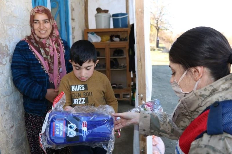 Ekiplerinin ziyaretinden memnun olan çocuklar ve aileleri jandarma ekiplerine teşekkür etti.