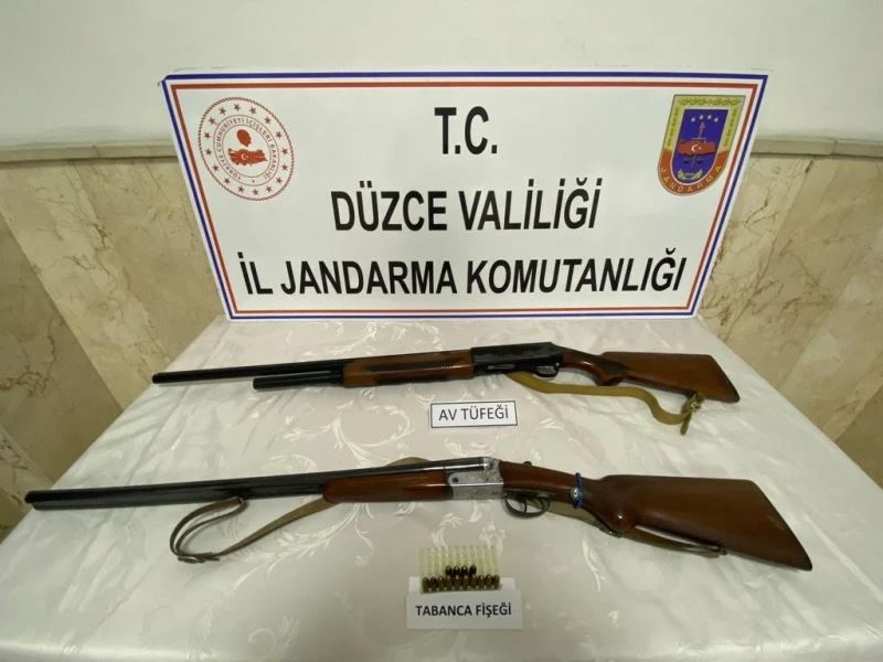 Düzce il Jandarma Komutanlığı ekipleri, gelen ihbarı değerlendirerek eve yaptıkları baskında 2 adet ruhsatsız av tüfeğine el koydu.