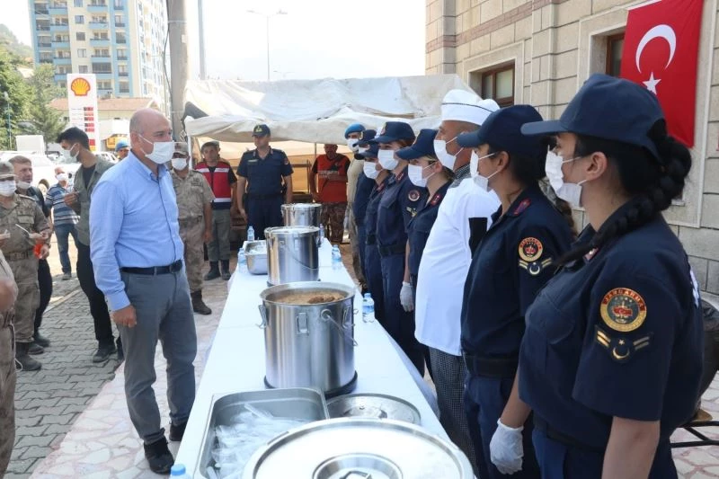 Sel afetinde hayatını kaybedenler için Kastamonu’nun Bozkurt ilçesinde jandarma ekiplerince helva dağıtıldı.