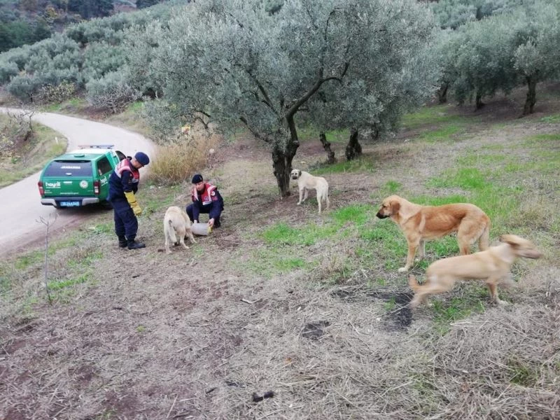 Bursa’da jandarma ekipleri sokak hayvanlarını besledi.