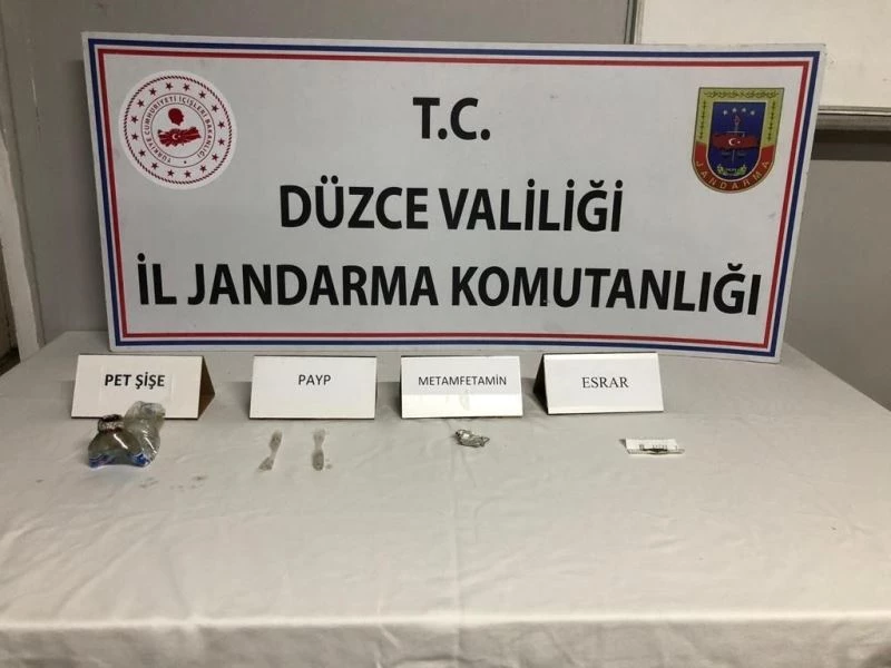 DÜZCE – Düzce’de jandarma ekipleri yapılan operasyonlarda 179 gram esrar, 5 gram metamfetamin, 25 gram kenevir tohumu, 6 adet uyuşturucu içiminde kullanılan 6 adet payp ve ruhsatsız tabanca ele geçirildi.