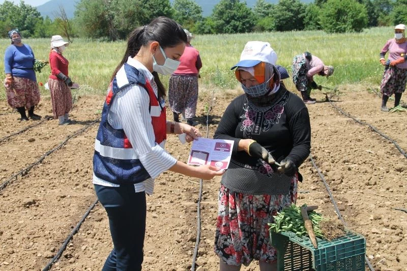 Çanakkale İl Jandarma Komutanlığı ekipleri köy köy dolaşarak kırsalda yaşayan tüm kadınlara yönelik KADES tanıtım çalışmalarını sürdürüyor. Her ay kadınların bilgilendirilmesi için faaliyet planı oluşturan Aile İçi ve Kadına Yönelik Şiddetle Mücadele Kısım amirliği tarafından bu ay Yenice İlçesinde tarım işçisi olarak çalışan vatandaşlara Kadın Destek Uygulaması (KADES) programı tanıtılarak, ‘Aile İçi ve Kadına Yönelik Şiddet ile Mücadele’ kapsamında, şiddete maruz kalındığında veya tanıklık edildiğinde izlenecek yol ve irtibat numaraları konularında yüz yüze bilgilendirme yapıldı. Tarım işçilerinin çocuklarına da Jandarma Çocuk Dergisi, boyama kitabı ve oyuncak hediye edildi.