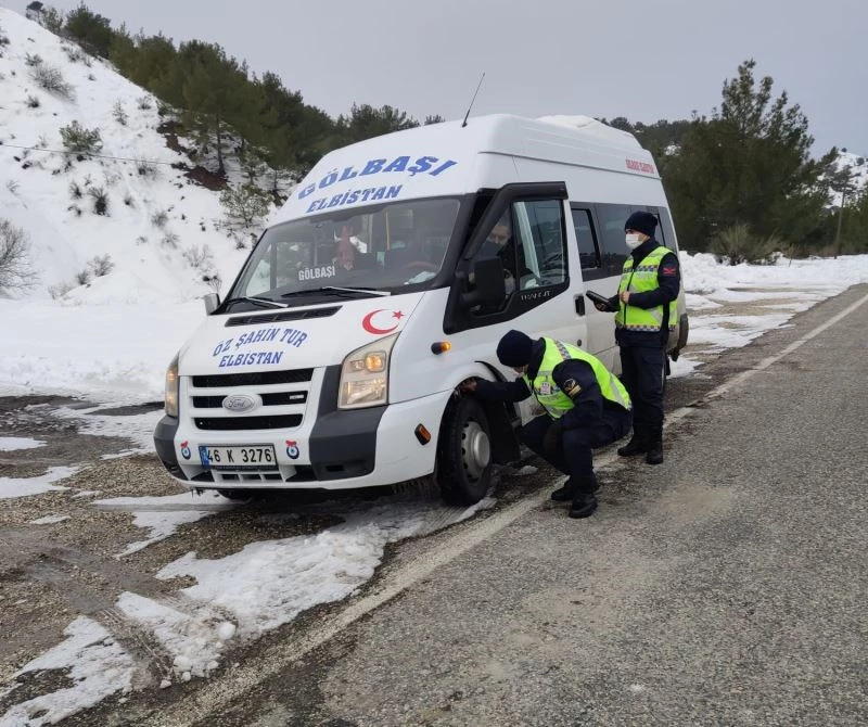 Adıyaman İl Jandarma Karakol Komutanlığı ekiplerince ticari araçlarda kış lastiği denetimi yapıldı.
