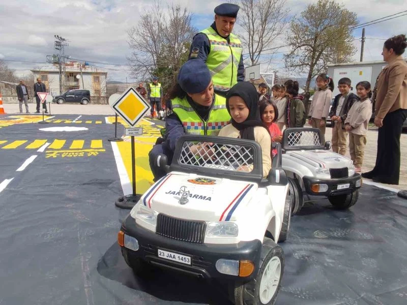 Elazığ’da İl Jandarma Komutanlığı ekipleri tarafından öğrencilere trafik güvenliği eğitimi verildi.