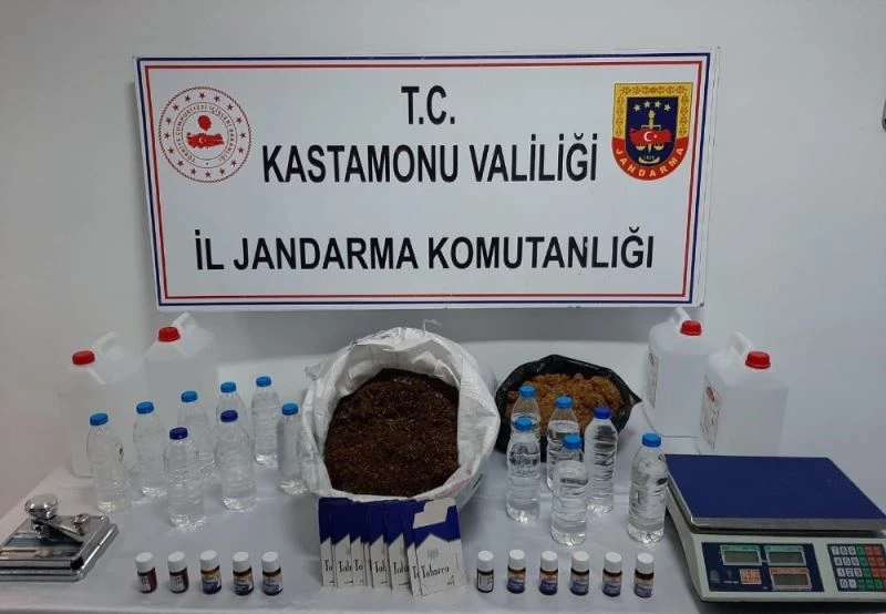 Edinilen bilgiye göre, Kastamonu İl Jandarma Komutanlığınca kaçak içki üreterek ticaretini yaptığı tespit edilen şahsın evinde ve aracında yapılan aramada; 3 adet 5 litre etil alkol, 20 mililitrelik 11 adet pet şişe içinde anason, 0.5 mililitrelik 12 adet pet şişe içinde sahte alkol, 8 kilogram kontrolsüz kaçak tütün, 1 adet makaron ve 1 adet dijital terazi ele geçirildi.