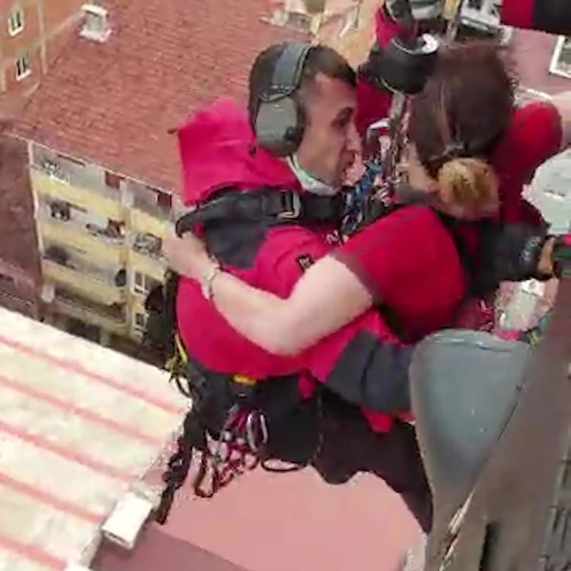 Dün yapılan çalışmalarda selden kaçarak evlerinin çatılarında mahsur kalan vatandaşlar helikoptere bağlı kanca ile çekilerek kurtarılmıştı. Bugün de henüz ulaşılamayan noktalarda kalanların kurtarılmasına çalışılıyor. Jandarma Arama Kurtarma Timleri tarafından paylaşılan görüntülerde bir vatandaşın helikoptere alınarak kurtarılma anları paylaşıldı. Evinin çatısındaki mahsur kalan bir kadının kurtarılma anları mücadeleyi gözler önüne serdi.