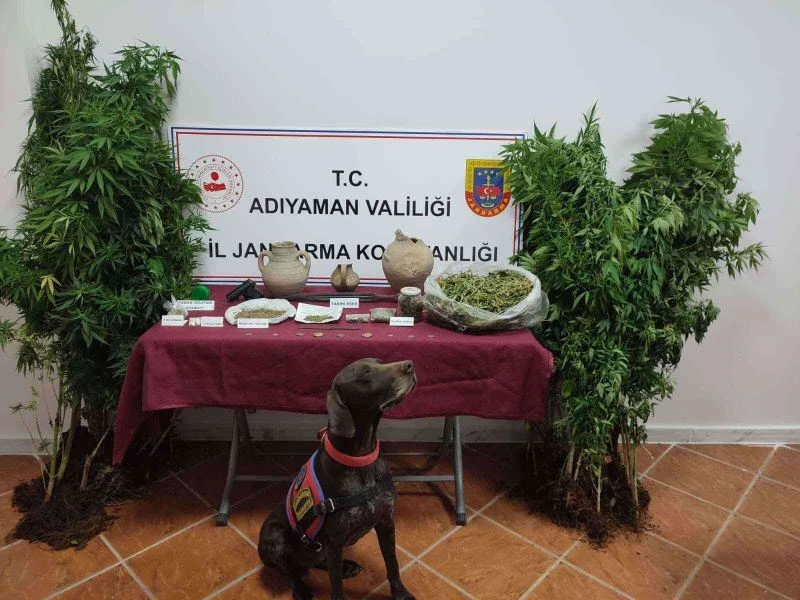 Adıyaman’ın Kahta ilçesinde jandarma ekipleri çok sayıda tarihi eser ve uyuşturucu madde ele geçirdi.
