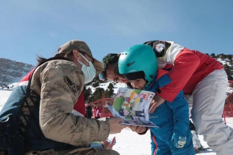 Erzincan İl Jandarma Komutanlığı ekipleri tarafından Ergan Dağı Kış Sporları ve Doğa Merkezi ziyaretçilerine, KADES uygulaması tanıtıldı.