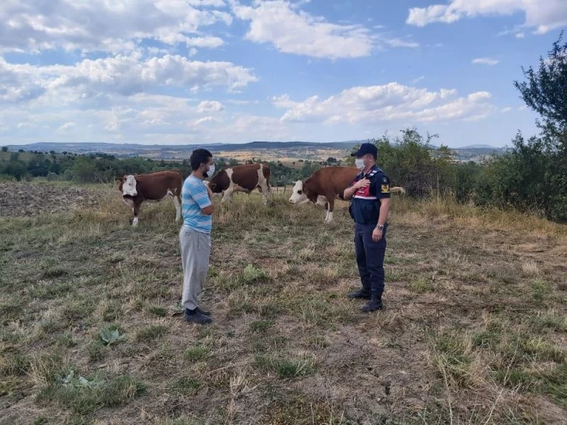 Jandarma, kayıp büyükbaş hayvanları drone ile bulup sahibine teslim etti