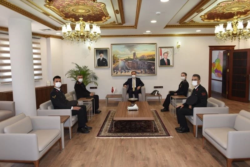 Şanlıurfa Valisi Abdullah Erin, Türk Jandarma Teşkilatı’nın kuruluşunun 182’nci yıl dönümü münasebetiyle valiliği ziyaret eden İl Jandarma Komutanı Tuğgeneral Metin Düz ve beraberindeki jandarma personelini makamında kabul etti.