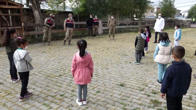 Ardahan İl Jandarma Komutanlığı, köy okullarındaki öğrencilere maske ve boyama kitabı dağıttı.