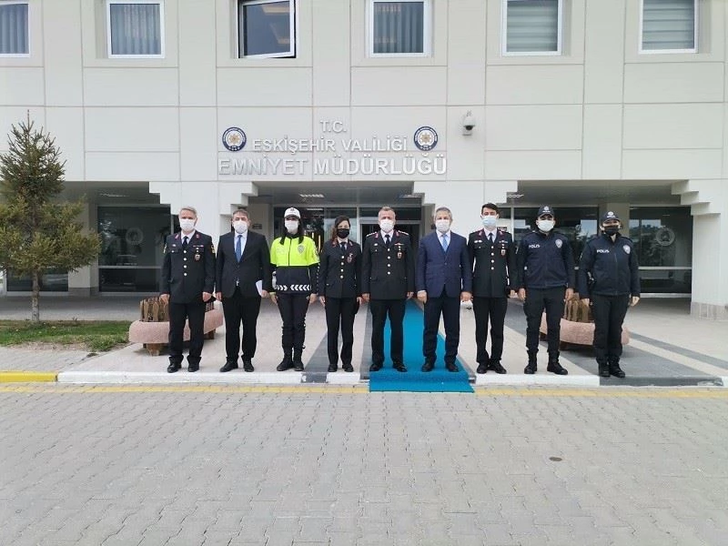 Eskişehir İl Jandarma Komutanı Jandarma Albay Ercan Atasoy, Türk Polis Teşkilatının 176’ncı kuruluş yıl dönümü sebebiyle İl Emniyet Müdürü Engin Dinç’i ziyaret ederken, ziyarette jandarma ve polisin Türkiye’nin huzur ve güvenliği ile omuz omuza görev yaptığı vurgulandı.