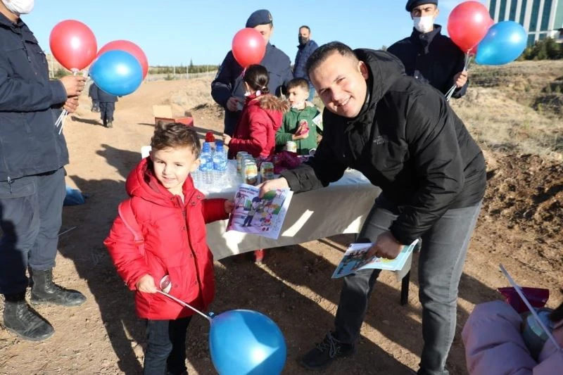 Jandarma önce aileleriyle fidan dikti, sonra çocuklarla uçurtma uçurdu