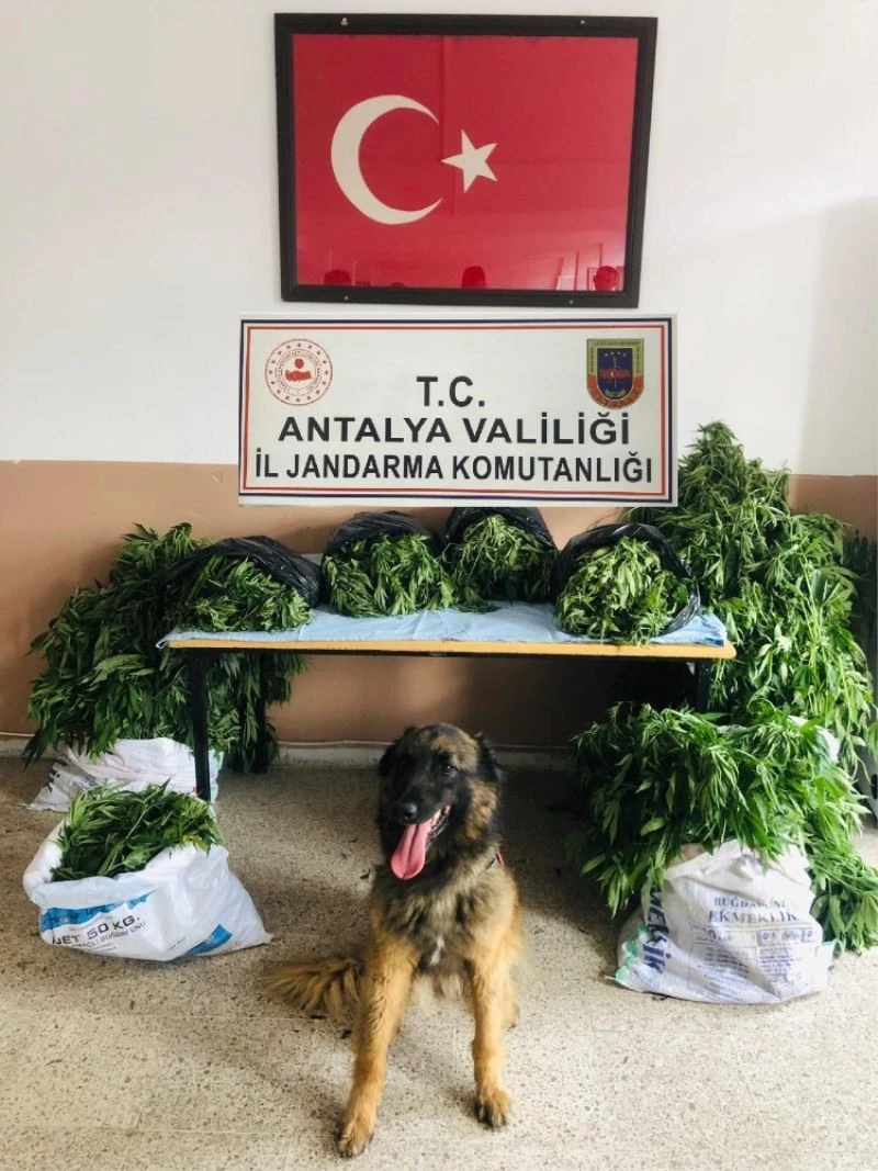 Antalya’da Gazipaşa İlçe Jandarma Komutanlığı ekipleri, ormanlık alanda 38 kilo kubar ersar ve 470 kök kenevir ele geçirdi,