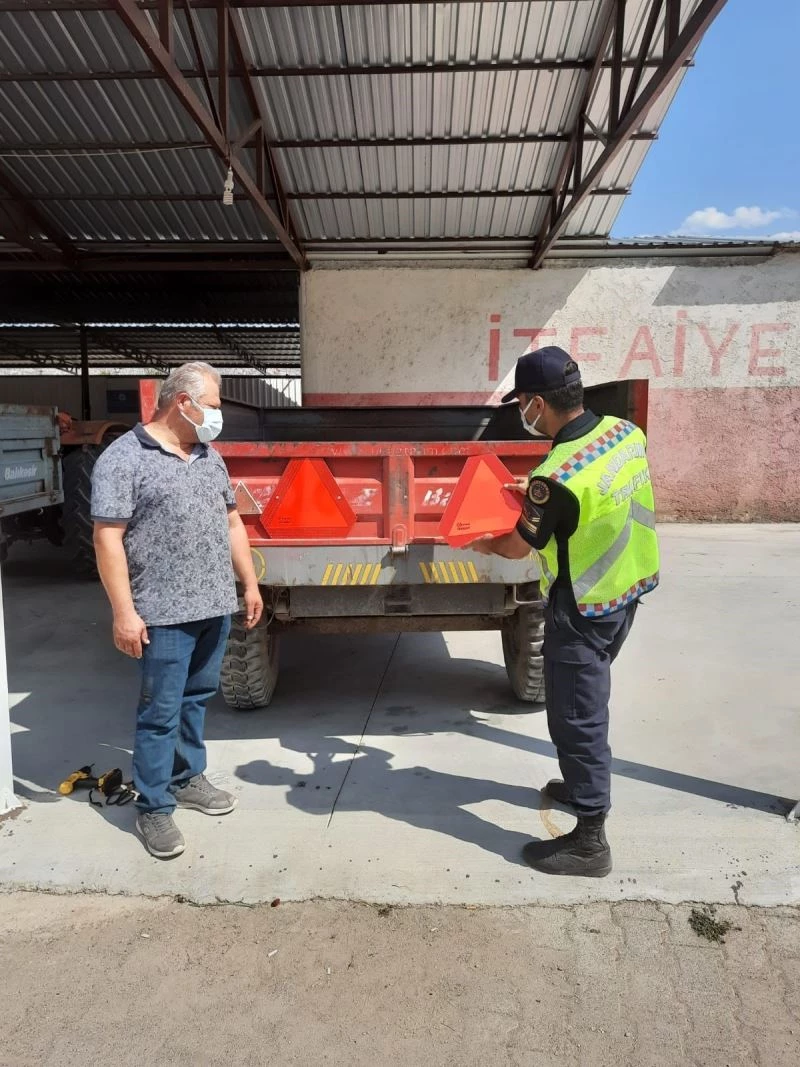Korkuteli İlçe Jandarma Komutanlığı Trafik Tim Komutanlığı ekipleri, ilçede traktör kazalarını önlemek amacıyla, “Reflektör Tak Görünür Ol” projesi kapsamında reflektör dağıttı.